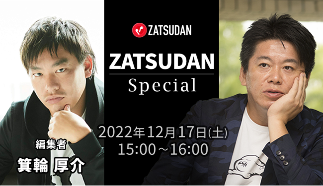 株式会社ZATSUDANは、2022年12月17日(土)にゲストを迎えた豪華対談イベントを開催します。