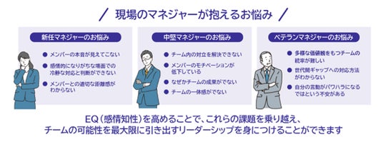 EQを高めることで、マネジャーはメンバーの感情を適切に理解し、チーム内の信頼関係を構築することができます。これにより、オープンなコミュニケーションが促進され、創造的な問題解決や高いパフォーマンスを発揮できるチーム作りが可能になります。本教材を通じて、企業の組織力向上と持続的な成長に貢献してまいります。