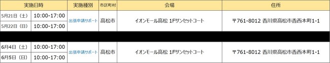 ※開催場所の調整状況や新型コロナウィルスの感染状況等により、「出張申請受付」及び「出張申請サポート」の開催を中止・延期、または実施内容が変更となる可能性がございます。