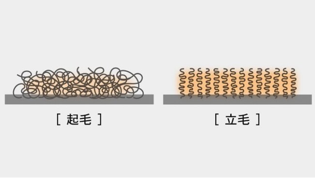 繊維一本一本が独立して立ち上がり、それらが密集してかさ高性をつくる「立毛」技術を駆使。