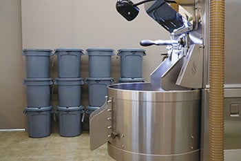 ロクメイコーヒーの焙煎所「ロクメイファクトリー」でのブルートコンテナ