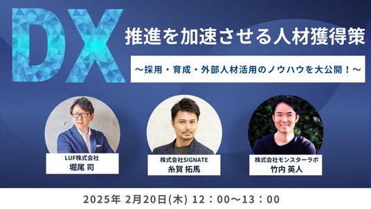 LUF株式会社(本社:東京都港区、代表取締役社長:堀尾 司)は、2月20日(木)に開催されるウェビナー「DX推進を加速させる人材獲得策~採用・育成・外部人材活用のノウハウを大公開!~」に登壇します。