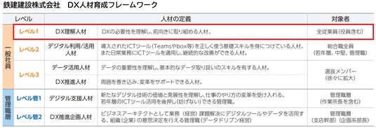 鉄建建設株式会社が実施する「DX人材育成フレームワーク」