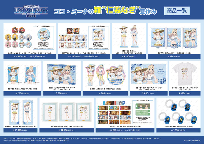 ココ・ミーナの浜辺ver.の描き下ろしイラスト使用グッズのほか、劇場版アニメ『ハイスクール・フリート』ファンの皆様にお楽しみいただけるイベントとなっております。皆様のご来店お待ちしております。