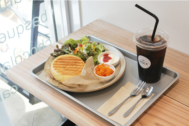 NOCEのインテリアでコーディネートされた店内はおしゃれで、思わず写真が撮りたくなるような雰囲気です。他にはないおしゃれなデザインのテーブルやチェアで、非日常をお楽しみいただけます。看板メニューのパニーニは粉の配合から店内で手作りしているパンを使用、人気のクリームソーダと一緒にお召し上がりください。