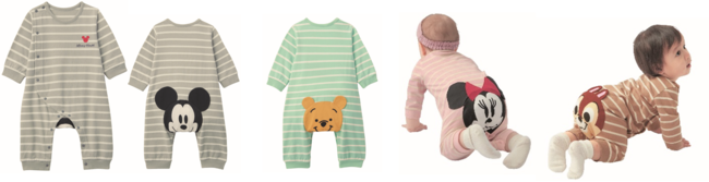 「ベルメゾンのディズニーベビーグッズ」とは、「赤ちゃんがさらに可愛くなる」をコンセプトにディズニーキャラクターを用いたベルメゾンオリジナル商品です。今回、ハイハイしている後ろ姿が可愛い「#おしりキャラクター」のカエルロンパース※1、まるで赤ちゃんが喋っているように見える吹き出しスタイ付きカエルロンパース※など3種のベビー服を展開いたします。特にお尻の部分にキャラクターがデザインされている「#おしりキャラクター」シリーズは、ハイハイしている赤ちゃんの後ろ姿が「可愛すぎる!」「写真を撮らずにはいられない!」とうれしいお声をいただいています。そんな「#おしりキャラクター」のディズニーシリーズからミッキーマウス、ミニーマウス、くまのプーさん、チップの4キャラクターがデザインされた新しいバージョンが登場。お孫さんや出産祝いのギフトとしてもオススメです。※1 カエルロンパースとは、ベルメゾン独自の呼称でおしりにマチがあるロンパースを指す。
