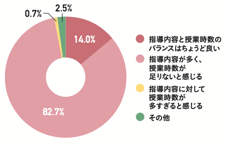 高校教員調査の中で、多くの教員が「情報」を担当することに対して、ポジティブと回答しました。しかし、2025年から大学入学共通テスト(以下、「共通テスト」)に「情報」が新設されることに対しては、81.7%の教員が不安を感じています。加えて、82.7%の教員が、「情報I」全体として「授業時数が少ない」と回答しています。