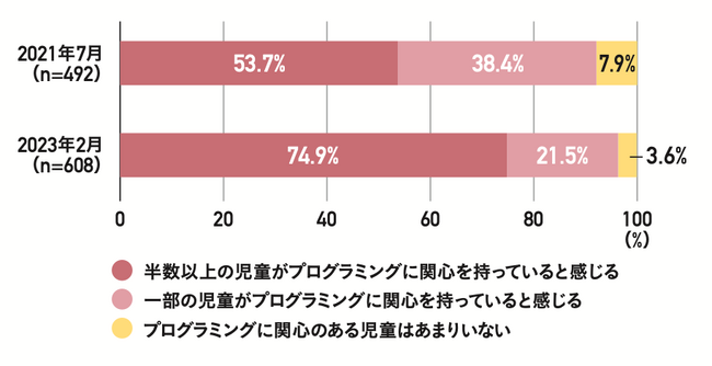 2021年12月に発表した前回の調査では、新型コロナウイルス感染症の流行によって急速に進んだ社会のデジタル化を背景に、教育現場や家庭でもプログラミング教育の必要性が認識されていました。しかし、コロナ禍で教育現場は混乱しており、GIGAスクール対応の影響でプログラミング教育の実施が後手に回っている状況が垣間見られました。