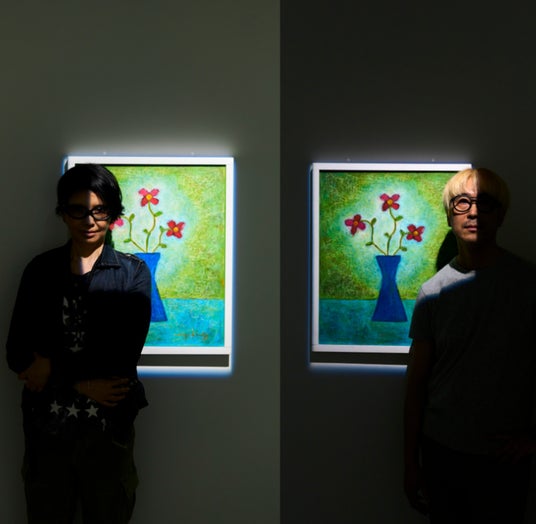 二人で一人の芸術家ミレイヒロキ 「環境・心」などをテーマに作品を制作。1996年にフランスで作品を発表。それ以来、一貫して花を描き続ける。