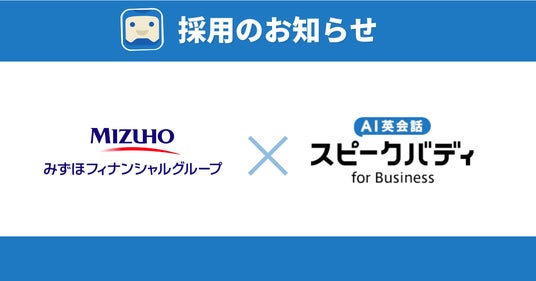 AI英会話アプリ「スピークバディ」の開発・運営を行う株式会社スピークバディ(本社:東京都中央区、代表取締役社長:立石剛史、以下「当社」)は、みずほフィナンシャルグループが7月に開始した新たな人事制度の1つである「学びファンド」のプログラムに、当社が提供する同アプリが採用されたことをお知らせします。