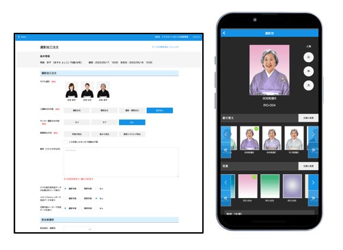 遺影写真の着せ替えや背景をシミュレーションしながら、ご遺族とリアルタイムで共有しながら打ち合わせができるので、発注ミスなどのトラブル防止にもつながります。