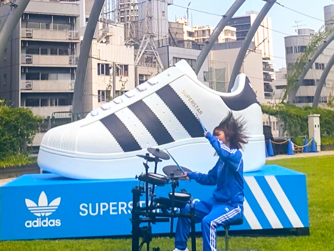 「憧れのadidasとのコラボ企画と聞いた時はとっても興奮しました しかも歴史あるSUPER STARと自身のドラムパフォーマンスを掛け合わせた撮影で、めちゃくちゃ嬉しかったです!!関わってくださったみなさまに感謝の気持ちでいっぱいです!!」