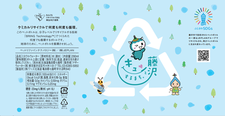 ペットボトルのデザインには、藤沢市の公式マスコットキャラクター「ふじキュン(ハート)」のほかに、藤沢市資源循環協同組合キャラクターの「えこりちゃん」、JEPLANの何度でも生まれ変わる循環のシンボルであるハチマークをあしらったデザインで、「ふじさわSDGsロゴマーク」も描かれています。