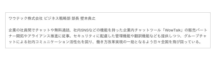 その中で、ビジネスチャット・社内SNS「WowTalk」は、ワウテックが掲げるサービスコンセプト「Communication-Rebuild」のもと、「言語」「距離・時間」「個性」「温度・感情」「経験」という5つの視点からビジネスシーンにおけるコミュニケーション課題をクリアにし、より快適かつスムーズな職場環境の醸成に貢献するサービスです。
