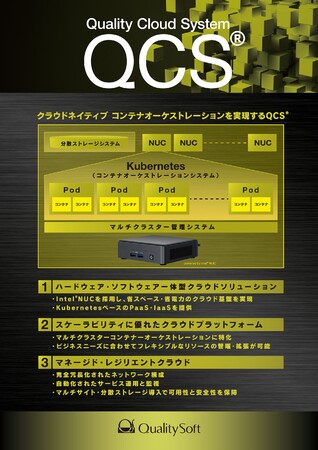 クオリティソフトからは、自社で構築運用するクラウドネイティブな「Quality Cloud System」(※1)の出展を行います。インテル(R) NUC(※2)を多数使ったマルチクラスター構成のKubernetes(※3)のデモンストレーションを実施いたします。