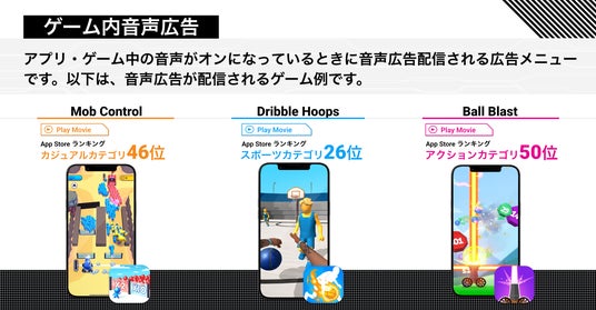 ~ゲームプレイ中に「ゲーム内音声広告」を含む3種類の広告を配信可能。自然な広告体験でブランド認知・好意形成が可能~