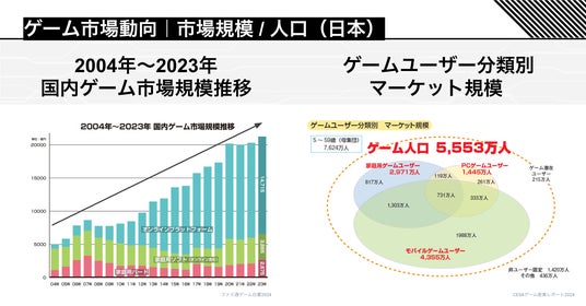 (左:ファミ通ゲーム白書 2024、右:CESA ゲーム産業レポート2024)