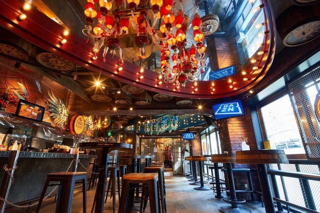 プロのデザイナーが監修するゴージャスな店内でカジュアルに会話やスポーツ観戦などをお楽しみいただけます。