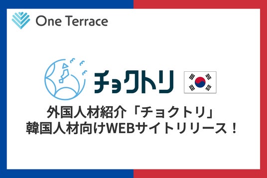 株式会社One Terrace(本社:東京都、代表取締役:石中達也)は、外国人材紹介事業「チョクトリ」の一環として、韓国人材向けのWEBサイト「One Terrace Korea」(https://korea.oneterrace.jp/)を新たに公開しました。韓国での集客体制を強化し、日本就職を目指す韓国人への支援を本格化します。