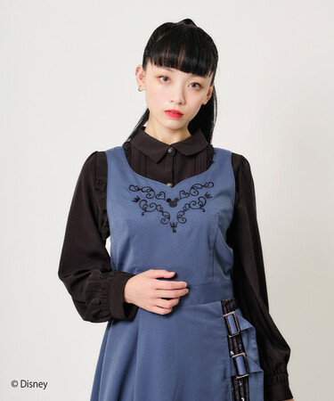 ハートネックでガーリーなアイテムに、ベルトデザインなどのダークな要素が共存するワンピースに仕上げました。