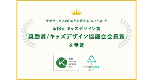 2024年9月18日(水)、当社が開発・提供をする児童発達支援・放課後等デイサービス向け保護者連絡システム「コノベル」が、第18回キッズデザイン賞 【奨励賞 キッズデザイン協議会会長賞】を受賞しました。
