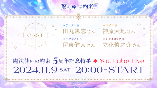 この度、株式会社coly(所在地:東京都港区、代表取締役社長:中島杏奈)は『魔法使いの約束』において、2024年11月26日(火)にサービス開始5周年を迎えます。それに向けて、特設サイトを本日公開いたしました。