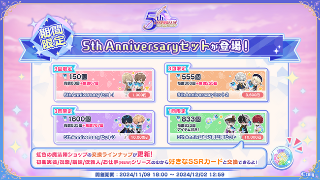 また、5周年に先駆けて、アプリ内では11月9日(土)から「5th Anniversary 前夜祭」キャンペーンを開催いたします。