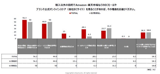 ・商品情報やレビューを見るためにECサイトを見ている人は全体の約6割。