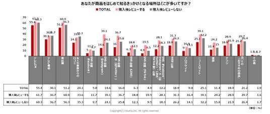 ・購入後レビューする人は、SNSで認知するケースも多い。