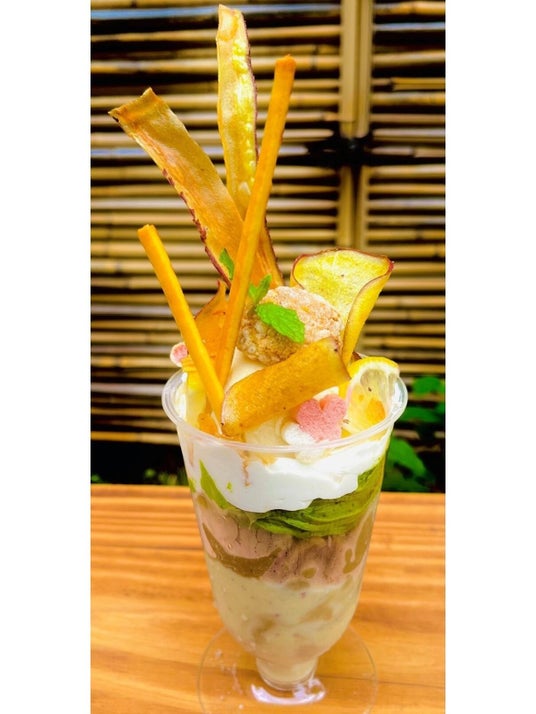 おいも日和/安納芋のふたいろ♪リッチモンブランパフェ:1000円夏のさつまいも博2023 人気投票2部門で1位を獲得した「ふたいろ♪モンブラン」をグレードアップしました。安納芋のクリームを贅沢に使用し夏でもさっぱり食べられる夏パフェに仕上げました!