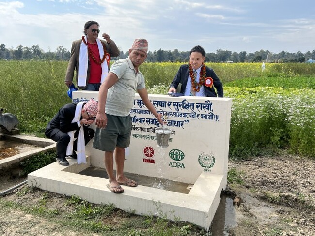 人の健康を左右する水。ネパール西部のバルディヤ郡ではその水が安心して利用できるものではなく、下痢や嘔吐などの体調不良の一因ともなっていた。水衛生環境の改善に取り組んでいるADRAは、ヤマハ発動機株式会社が製造する太陽光発電付き浄水装置「ヤマハクリーンウォーターシステム」を導入し設置を進めてきた。飲料水水質基準値を満たしていることが確認できた2月に引き渡し式を行い、この地域で暮らす人々は安心して飲める水を手にできるようになった。