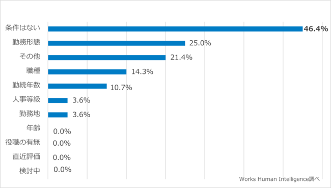 その他自由回答では、「予定される所定労働時間を勘案し、総務部長が決定する。」といった回答が寄せられました。過重労働の恐れや本業への支障がないかを勘案して判断する企業が多数を占めています。