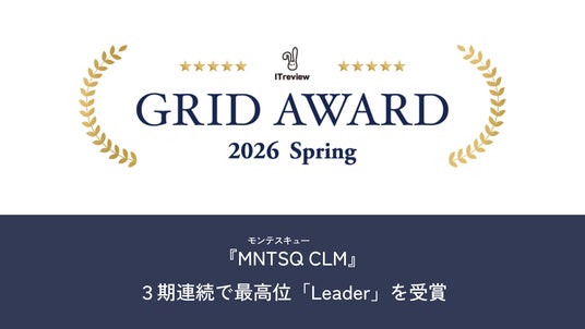 MNTSQ株式会社(本社:東京都中央区、代表取締役:板谷 隆平、以下「当社」)が提供する契約ライフサイクル管理プラットフォーム『MNTSQ CLM(モンテスキュー CLM)』は、国内最大級のITレビューサイトITreviewが主催する「ITreview Grid Award 2026 Spring」において、CLM(契約ライフサイクル管理ソフト)カテゴリーの総合および大企業の2部門にて、最高位である「Leader」を3期連続で受賞しました。