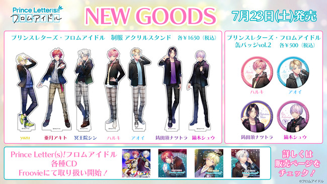 また、7 人のアイドルによるアクリルスタンド 7 種と缶バッジ 4 種の発売も開始いたします。