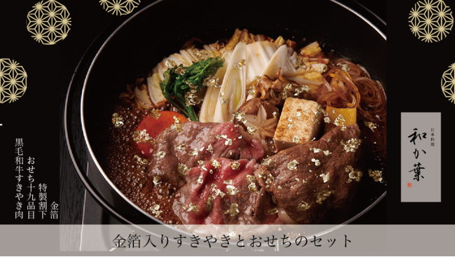 美しい日本庭園を眺めながら懐石料理を楽しめる「日本料理 和か葉」(エスオーユーホールディングス株式会社)より、おせちとしゃぶしゃぶ・すきやきがセットになった「金のおせち」をC-VALUEにて特別販売。