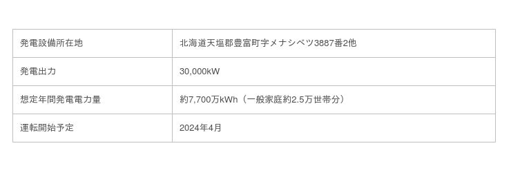本発電所は、北海道天塩郡豊富町において開発中の発電出力30,000kWの陸上風力発電所で、2024年4月の運転開始を予定しています。