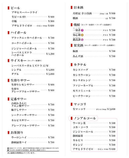 ※メニュー一例です。詳細は店舗メニューページをご参照ください。