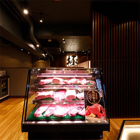 店頭にはその日ご提供可能な和牛のブロックをショーケースにて展示しており、和牛の価値が視覚でもお楽しみいただけます。