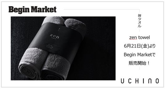 内野株式会社(本社:東京都中央区/代表取締役社長:内野信行)は、株式会社Begin(本社:東京都千代田区/代表取締役社長:波多和久)が展開するオンラインセレクトショップ「Begin Market」とコラボしたタオルをリリースすることをお知らせいたします。グローバルにウケる新たなスタンダードのタオルを!というコンセプトのもと、いいモノを紹介し続けて35年のBeginとタオルを作り続けて70年超のUCHINOでこだわり抜いて作り上げました。引き算の美学が織りなす粋な肌触りの「zen towel」は、Begin Marketにて6月21日(金)より発売いたします。(https://market.e-begin.jp/)