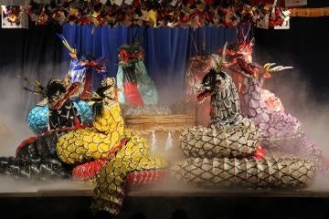 - 午後4時から午後4時40分頃広島あきたかた神楽(会場:大手前公園)太鼓や笛などのお囃子と一緒に、華やかな衣装や表情豊かな神楽面をつけた人たちが、ある物語を題材にして舞います。安芸高田市内にある22の神楽団体から「日吉神楽団」をお招きし演舞いただきます。昭和54年には西尾山八幡神楽として広島県無形民俗文化財の指定を受けるなど歴史のある神楽団です。
