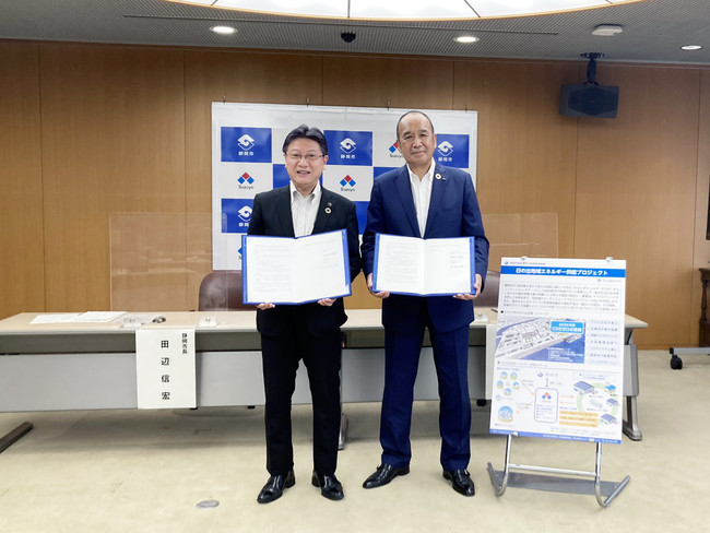 今般の先行地域のうち、清水区日の出地区における脱炭素化に向けて、静岡市と鈴与商事の緊密な連携を約するために本協定書を締結し、同市が目指す「脱炭素を通じて新たな価値と賑わいを生む『みなとまち しみず』からはじまるリノベーション」に向かい協働して取り組んで参ります。
