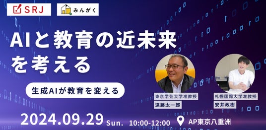 株式会社みんがく(本社:東京都目黒区、代表取締役:佐藤 雄太)は、株式会社SRJ(本社:東京都中央区、代表取締役 堀川直人)と「AIと教育の近未来を考える」をテーマにした共催セミナーを開催いたします。