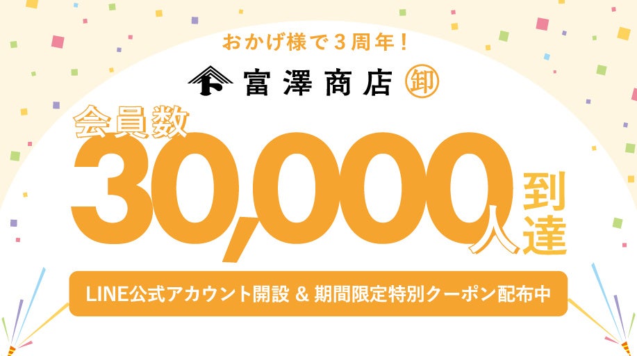 日本最大級の製菓・製パン材料、器具専門店として創業106年の株式会社富澤商店は、法人・個人事業主様向け卸専用サイト「富澤商店 卸オンラインショップ」がサービス開始から3周年を迎え、この1年間で会員数が約1万人増加、累計約3万人に到達したことをお知らせいたします。