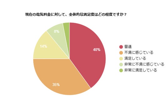 - 現在の電気料金に対して、全体的な満足度はどの程度ですか?