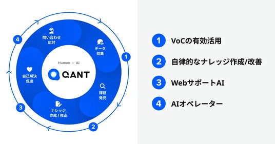 「あらゆる人を負の体験から解放し、可能性を引き出す」をミッションに掲げ、人とAIの協働でPDCAを持続的に回せる循環型モデル「カスタマーサポートオートメーション」を推進する基盤「QANT(クアント)」を開発・提供。