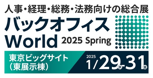 松本 融、以下、AIoTクラウド)は、本年1月29日(水)から31日(金)に東京ビッグサイトで開催される「人事・経理・総務・法務向けの総合展 バックオフィスWorld2025SPRING」に出展します。