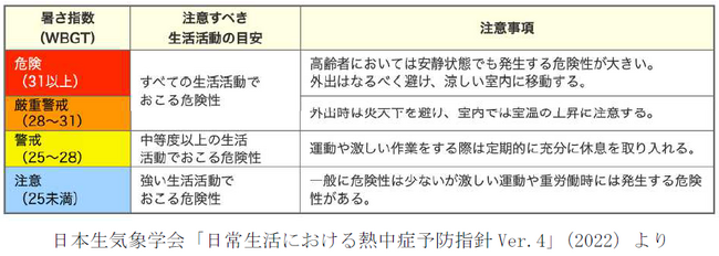 暑さ指数が28以上の場合は、日常生活におけるすべての生活活動において熱中症の危険性が高まり、冷房の利用や外出を控えるなどの予防対策が必要となりますので、熱中症予防のために是非とも御活用ください。
