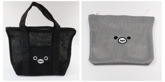 ○Suicaのペンギンのトートバッグと子ペンギンのポーチのセットは、洗濯可能なメッシュ素材