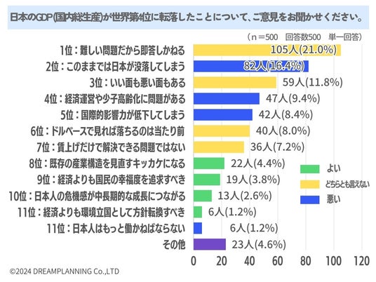 日本のGDP(国内総生産)が世界第4位に転落したことについて、ご意見をお聞かせください。