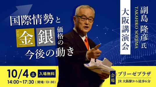 英国王立造幣局(以下ロイヤルミント)の公式代理店として、資産保全に人気の希少なイギリスコインを販売する株式会社コインパレス(本社:神戸市中央区、以下コインパレス)は、評論家・副島隆彦氏による講演会「国際情勢と金(ゴールド)・銀(シルバー)価格の今後の動き」を、2025年10月4日(土)にブリーゼプラザにて開催いたします。